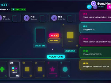 Vyzkoušejte klasickou africkou karetní hru WHOT! Hrajte sami proti AI nebo vyzvěte přátele v multiplayeru v reálném čase. Obsahuje ohromující neonovou grafiku, hudbu na pozadí a plynulé hraní. Hrajte zdarma! HRANÍ: 1. Na svůj tah zahrajte kartu, která odpovídá buď: - TVARU horní karty (kruh, trojúhelník, kříž, čtverec, hvězda) - ČÍSLU horní karty 2. Pokud nemůžete hrát, vezměte si jednu kartu z balíčku - Pokud je tažená karta hratelná, můžete ji zahrát - Jinak klikněte na PŘESKOČIT TAH 3. Karty WHOT (20) jsou divoké - hrajte je kdykoli a vyberte si libovolný tvar