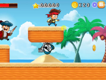 Jake vs Pirate Run je vzrušující běžecká hra, ve které musíte pomoci mladému námořníkovi dokončit náročnou překážkovou dráhu, zatímco je pronásledován zlým pirátem, který chce ukrást jeho poklad. Během útěku, kdy se potýkáte se všemi druhy smrtících překážek a nebezpečných nepřátel, nezapomeňte se ohlížet a vyhnout se střelbě piráta. Bavte se a užijte si skutečně působivou hru, zatímco se snažíte zdolat všech 5 úrovní a dokončit misi tím, že pomůžete Jakeovi dostat se na jeho loď a odplout pryč od všech hrozeb.