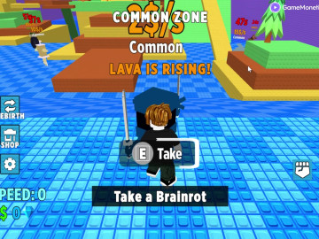 Běžte vpřed, sbírejte Brainroty a snažte se nenechat se chytit stoupající lávou. Vylepšete své Brainroty, abyste vydělali více, a vylepšete svou základnu, abyste mohli umístit ještě více postav.