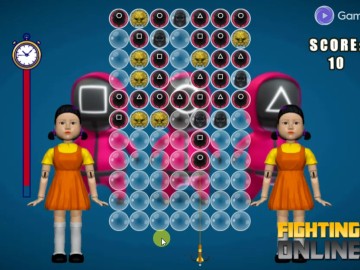 Vítejte v naší nejnovější bezplatné casual hře Squid Masks Pop. Jedná se o hru typu match 3, ve které musíte spojit 3 nebo více masek (vojáci, zlaté masky zvířat, maska frontmana), abyste je vymazali. Každá maska se vezme a vystřelí kuší. Neustále vycházejí nové masky. Když se masky dostanou až na dno, ke kuši, hra končí. Užijte si to a bavte se!!!