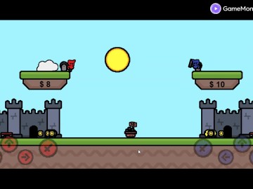 Jste připraveni bojovat se svým kamarádem? Házejte na svého kamaráda dělové koule a zničte jeho hrad. Jste připraveni na souboj červených proti modrým dělovým koulím? Nabijte dělo a vystřelte. Zakupte si dělovou kouli a vystřelte ji. Vyhrává ten, jehož hrad se rozpadne jako první. Bojujte se svým kamarádem a vyjděte z boje jako vítěz.