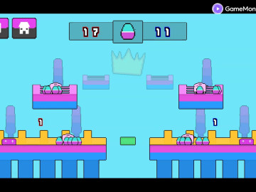 Dobrý den, zapojíte se do soutěže v hledání velikonočních vajíček? Vyberte si jednu z postaviček Jelly Bon a začněte sbírat vajíčka. Měli byste soutěžit se svým kamarádem. Dávejte si pozor. Posbírejte všechna vajíčka, aniž byste spadli z plošiny. Buď opatrný, abys přelstil svého kamaráda a posbíral všechna vajíčka. Dávej si pozor na ostré rotující nože, které přilétají ze stran a shora, mohou tebe i tvého kamaráda zabít. Pokud uděláš chybu, prohraješ a tvůj kamarád vyhraje. Buďte rychlí a posbírejte všechna vajíčka. Vyhrává ten, kdo nasbírá nejvíce vajec.