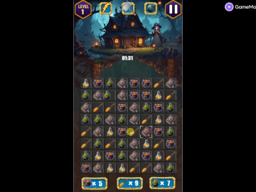 Odpovídají magické položky blok dlaždice a pomoci čarodějnice získat nové kouzlo. K dispozici bylo mnoho bloků magických předmětů, hráč je musel přiřazovat jednoduchým přejetím prstu. Nezapomeňte si pomoci speciálními silovými nástroji, které jsou v této hře k dispozici. Pokud máte rádi žánry, jako jsou logické hry, hry s odpovídajícími dlaždicemi nebo se jen chcete dobře pobavit, pak je tato hra určena právě vám. Vlastnosti této hry: Vysoce kvalitní grafika. Velikost hry je minimální. Super jednoduché ovládání. Zajímavé úkoly.